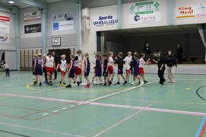 Toinen peli oli selvästi tasaisempi, mutta poikien mielessä taisi edelleen olla aikaisempi peli. Puoliajalle mentäessä tilanne oli 46-25 Oulun joukkueelle.